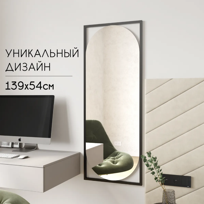Зеркало «Lustrous». Артикул GMZ-11-1-1/2/3 Дизайнерское овальное зеркало в прямоугольной металлической раме в современном стиле – идеальное решение для любых интерьеров. Оно способно стать эффектным акцентом в интерьере лофт при размещении на кирпичной стене или интересным элементом, поддерживающим авангардный стиль. Вариантов использования этого зеркала очень много. Зеркало настенного типа. Металлическая рама тонкая, но достаточно прочная. Само зеркальное полотно высокого качества, производства бельгийской фирмы AGC, продукция которой считается эталонной. На тыльной стороне рамы есть специальные крепёжные элементы.Характеристики:– габаритные размеры – 1390х540х20 мм, металлический профиль квадратный – 20х20 мм;