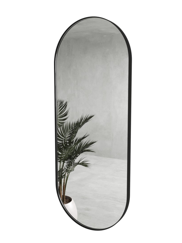 Дизайнерское овальное настенное зеркало Glass Memory Harmony в металлической раме черного цвета в Гусь-Хрустальном